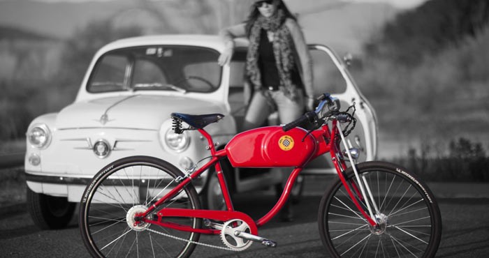 Their models OTOK, OTOR and RETROV all combine high class equipments as Sturmey Archer brakes, Brooks saddles and Michelin tyre. The frame is made in aluminium and the electrical power is hidden in the “tank” at OTOK and OTOR and in the sackcloth at RENTOV.